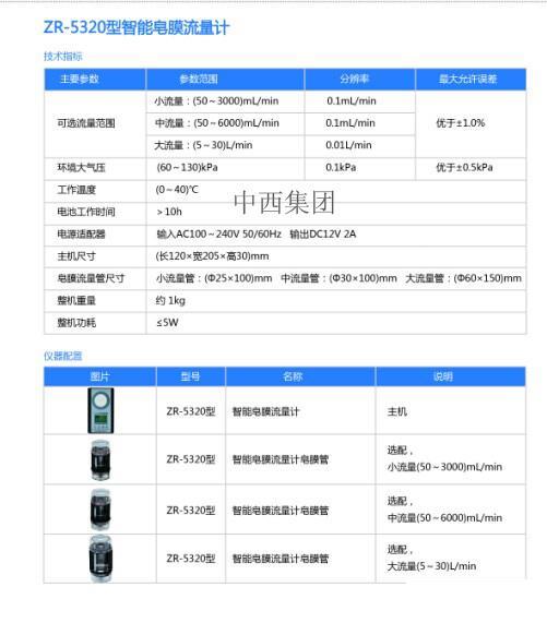 智能皂膜流量計(jì)ZR-53201套(選配中流量,含6L/min皂膜管)流量范圍(50—6000)mL/min
